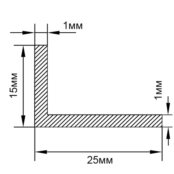 / Алюмінієвий кутник 25х15х1 мм, анод срібло