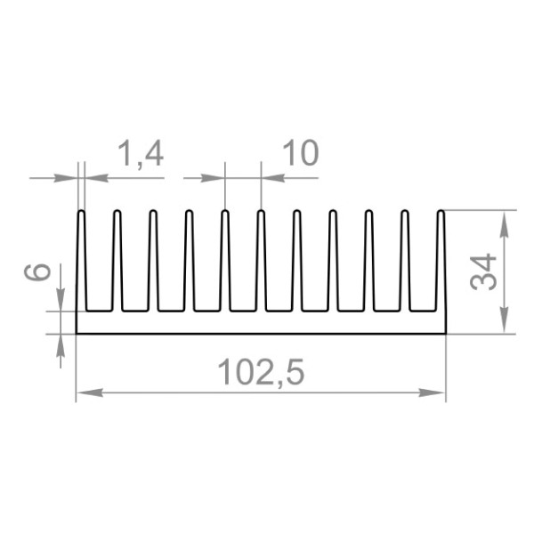 Ш-подібний радіаторний профіль 19х10 без покриття