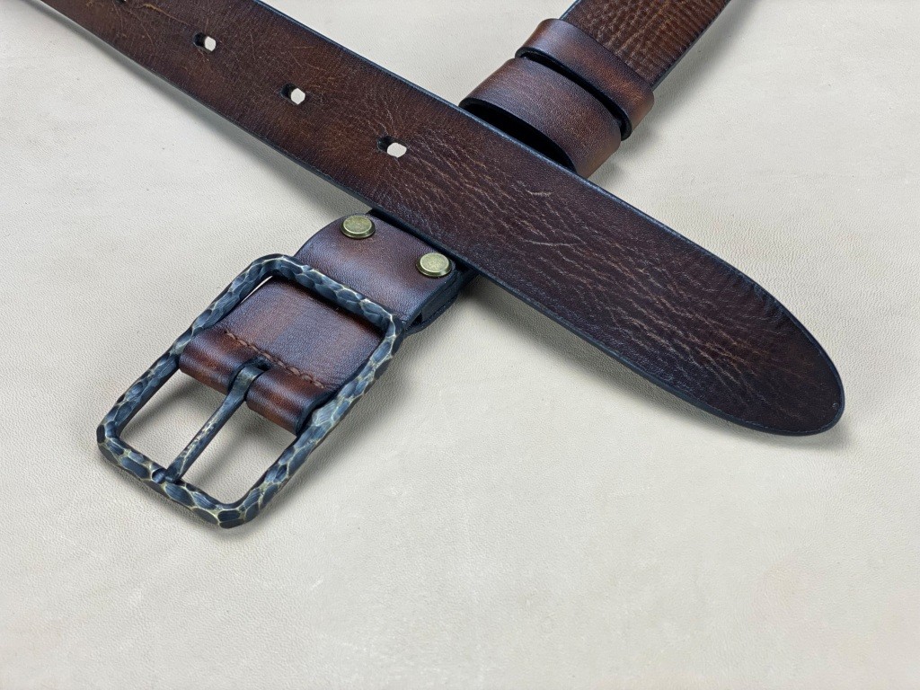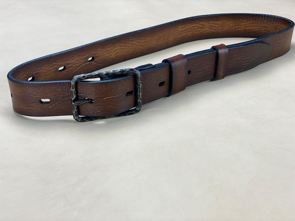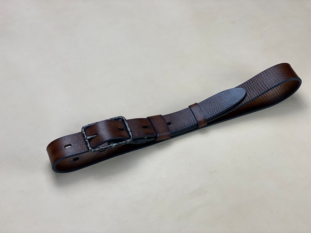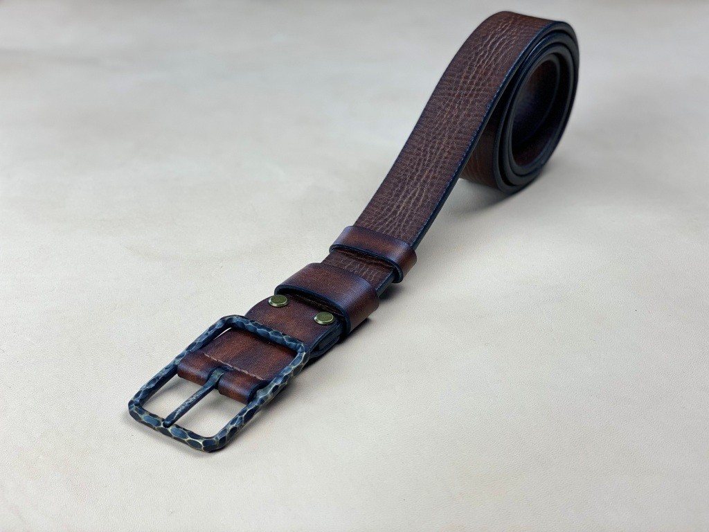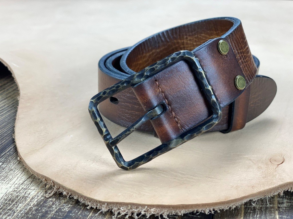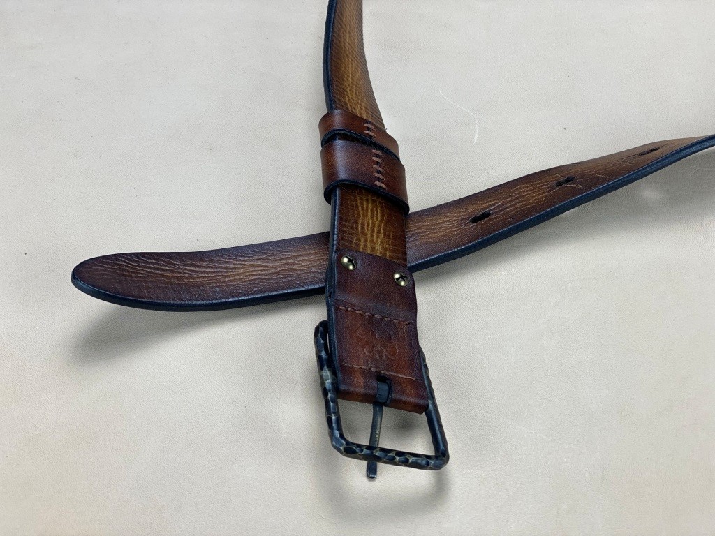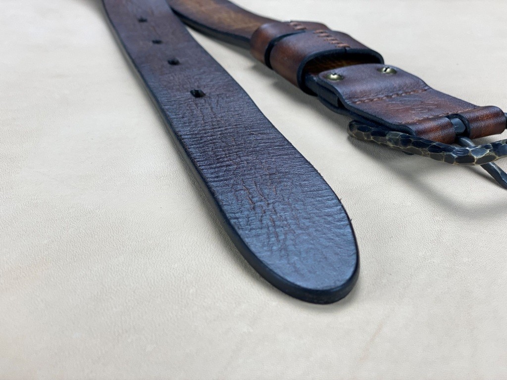 Ремінна заготовка пофарбована вручну та оброблена бальзамами для шкіри.