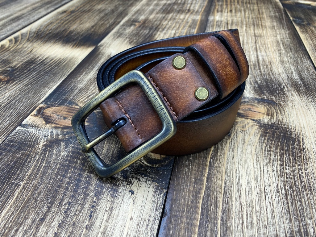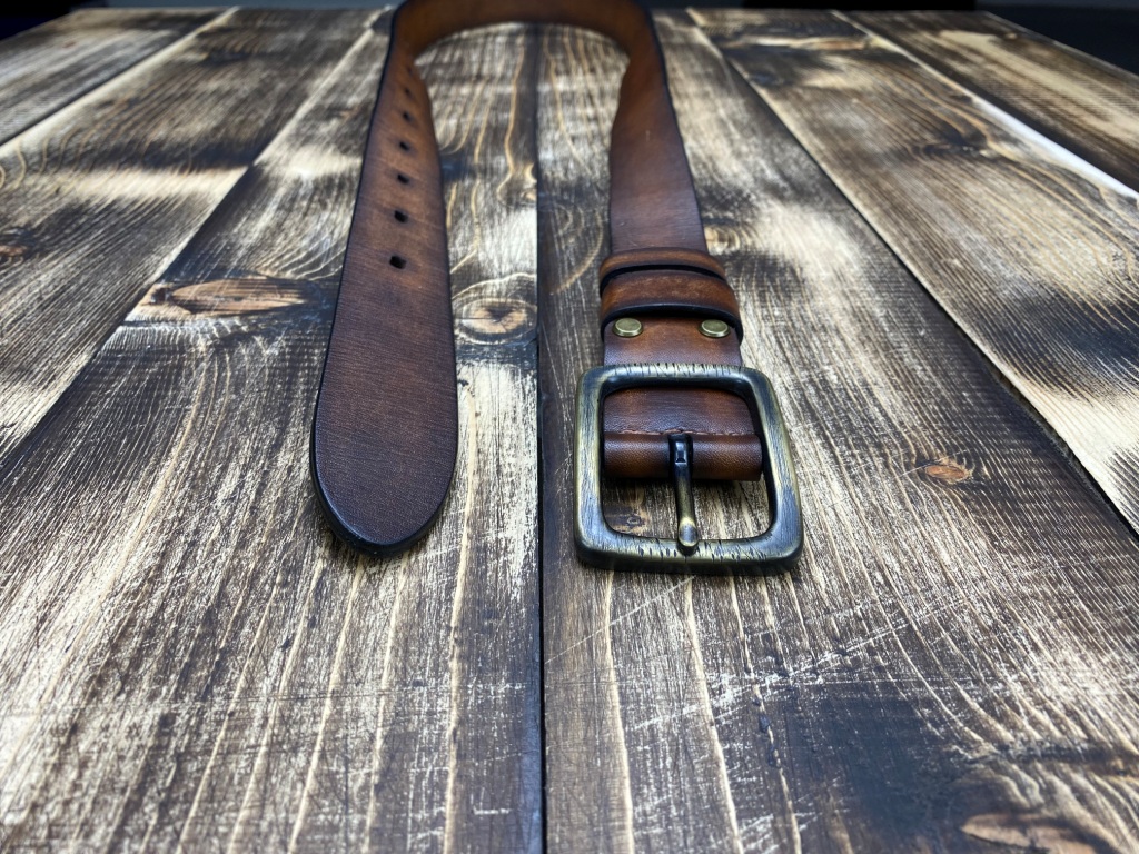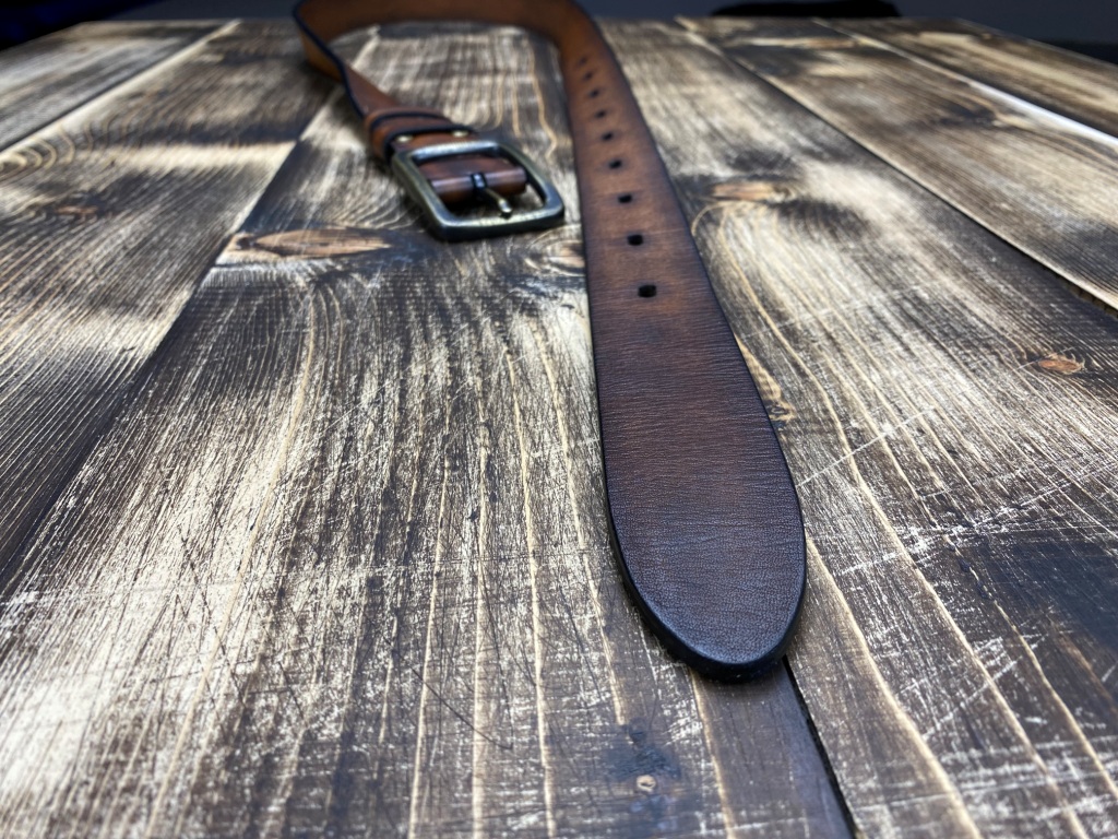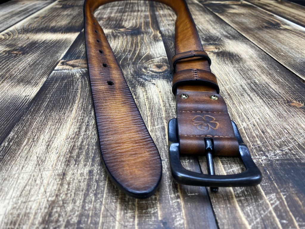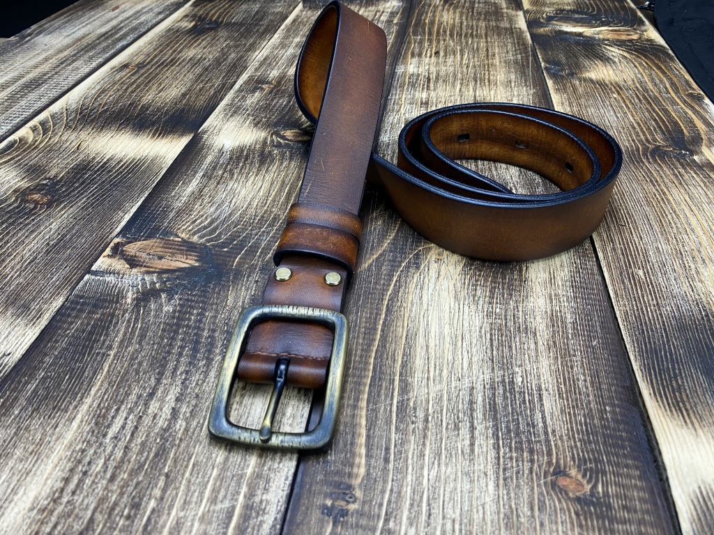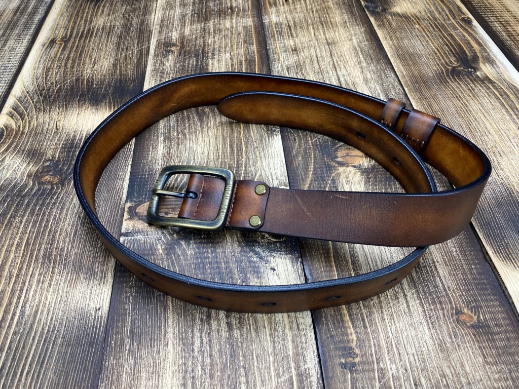 Ремінна заготовка пофарбована вручну та оброблена бальзамами для шкіри.