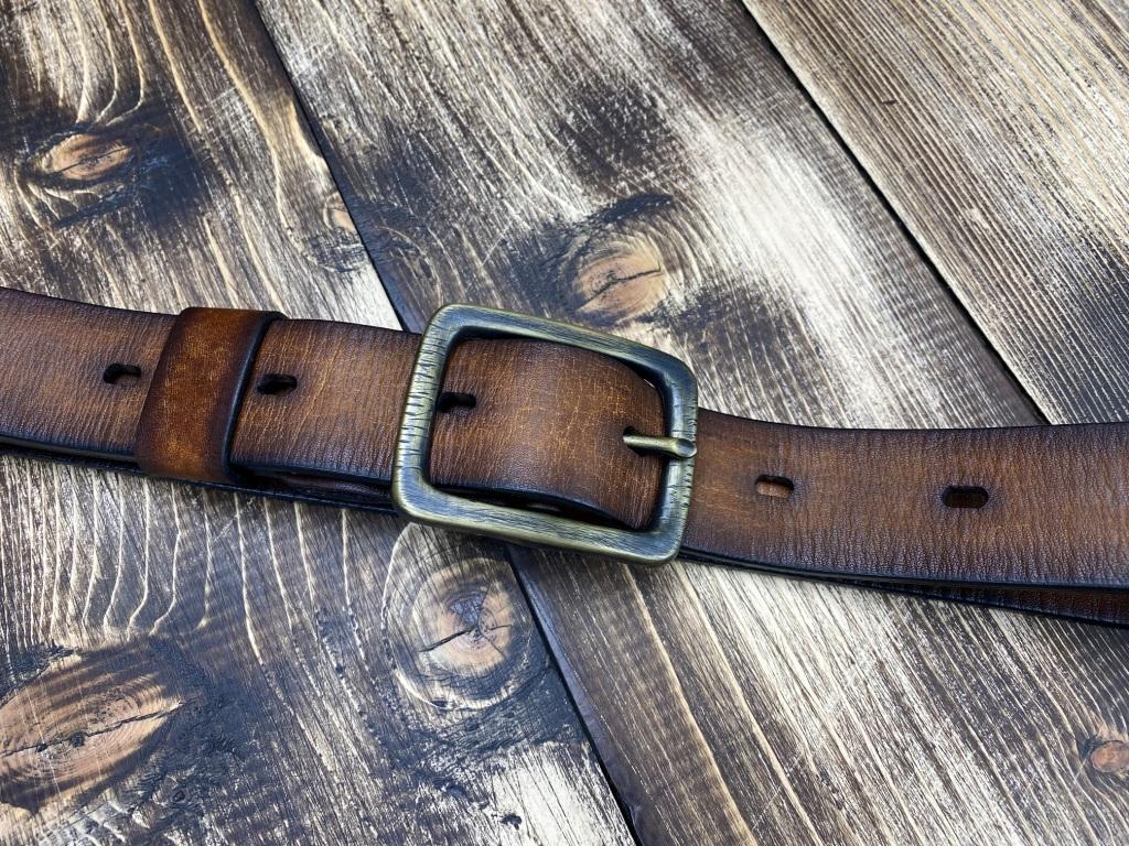 Вінтажний шкіряний ремінь з пряжкою з патиновоної латуні