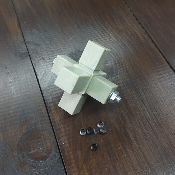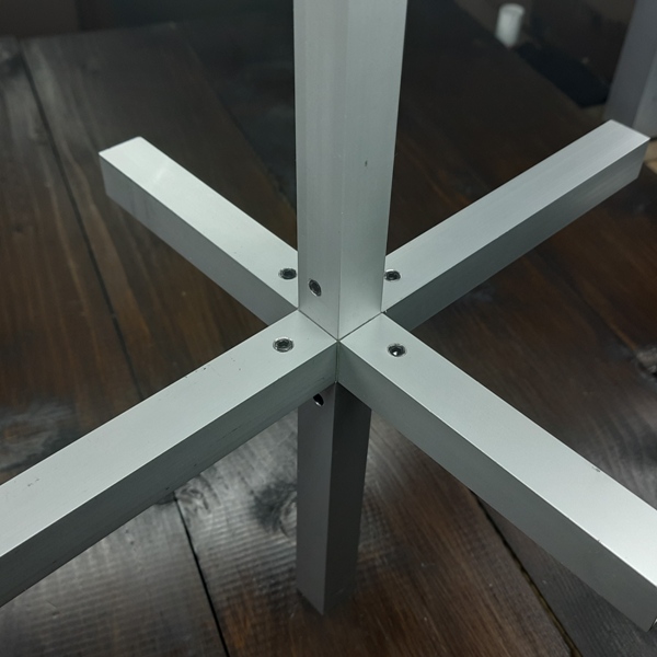 Призначення: елемент з’єднання деталей алюмінієвої труби по 6-ти сторонам. Це дозволить збирати багатосекційні конструкції.