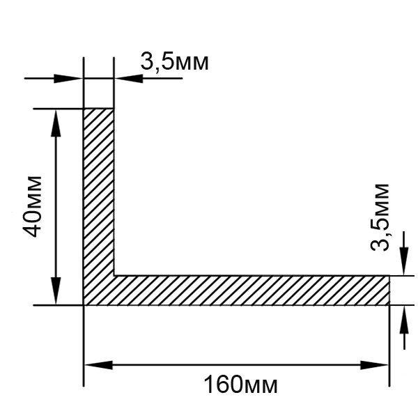 / Алюминиевый уголок 160х40х3,5 мм, без покрытия